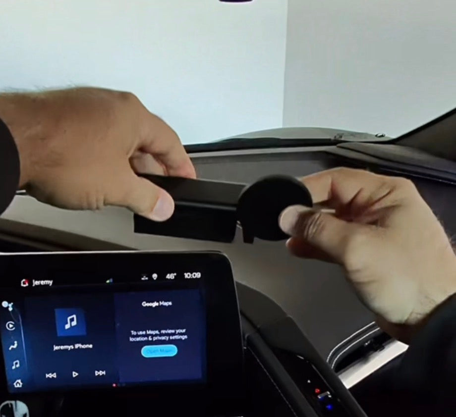 It's easy to install with no tools necessary. 3M VHB securely holds the mount to the top and back of the multifunction display. The MagSafe wireless charger has a USB-C that plugs into the 12V adaptor and then plugs into the 12V port under the C8 Corvette's glove compartment on the passenger side of the car.